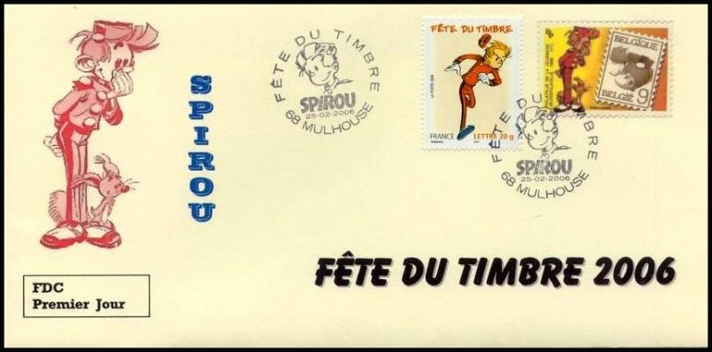 | Description | Fête du timbre 2006. Spirou, Fantasio et Spip l'écureuil |