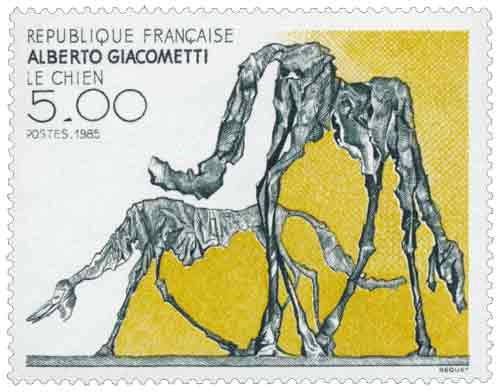 | Commentaire | Cette émission de 1985 s’inscrit dans la politique culturelle de l’administration postale française visant à rendre hommage aux grandes figures de l’art moderne à travers des œuvres emblématiques de leur démarche. Ce timbre est consacré à Alberto Giacometti, sculpteur et peintre d’origine suisse installé à Paris, dont l’œuvre a profondément marqué la sculpture du XXᵉ siècle par son interrogation constante de la condition humaine, de l’espace et de la solitude. Le sujet retenu renvoie à Le Chien, sculpture en bronze réalisée en 1956 et conservée à la Fondation Maeght, œuvre singulière au sein de la production de l’artiste, souvent interprétée comme une projection intime de sa propre errance et de sa fragilité. La période de création de cette sculpture correspond à une phase de maturité durant laquelle Giacometti approfondit son langage formel, caractérisé par des silhouettes allongées, une matière travaillée jusqu’à l’extrême et une tension permanente entre présence et disparition. Ce timbre intervient près de vingt ans après la disparition de l’artiste, à un moment où son œuvre est pleinement reconnue sur le plan international et régulièrement exposée dans les grandes institutions muséales. Il traduit la volonté de La Poste de valoriser un patrimoine artistique contemporain exigeant, en l’intégrant à la mémoire collective par le support postal. En mettant en avant une sculpture emblématique plutôt qu’un portrait, ce timbre souligne l’importance de la création elle-même comme vecteur de reconnaissance culturelle et rappelle la place centrale qu’occupe Giacometti dans l’histoire de la sculpture moderne, à la croisée de l’existentialisme, de la figuration et de la recherche plastique. Article rédigé pour WikiTimbres |