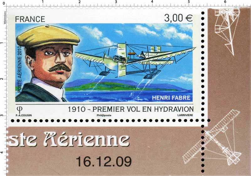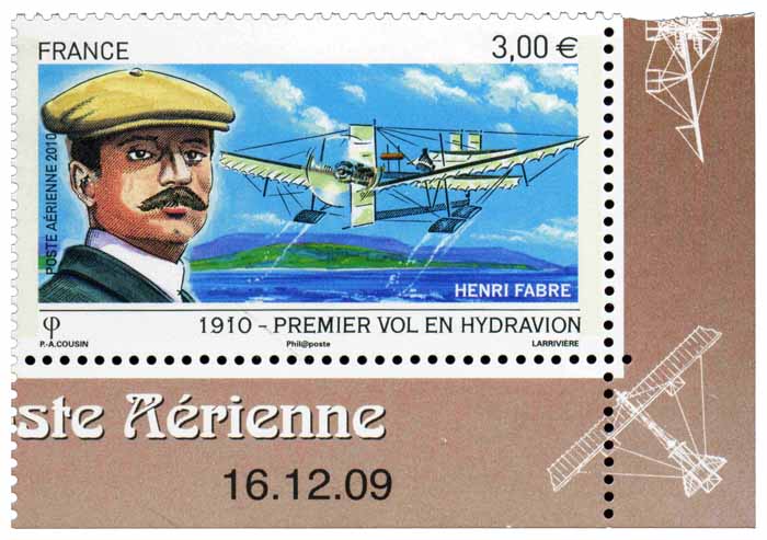 | Commentaire | Tirage de la mini feuille de 10 TP : 35 000 ex INFOS PRATIQUES PREMIER JOUR : 27, 28 mars 2010 Vente Anticipée : à Martigues (13), à Biscarrosse (40) et à Paris Le Carré d’Encre Ingénieur français, né à Marseille en 1882, décédé en 1984, Henri Fabre a été l’inventeur, le constructeur et surtout le premier pilote de l’hydravion. Le 28 mars 1910, sur l’étang de Berre, dans les Bouches-du-Rhône, Henri Fabre fait décoller son hydravion, qu’il surnomme le « canard » (appareil dont le petit plan était à l’avant et le système propulsif à l’arrière). Après avoir glissé sur cinq cents mètres, l’appareil s’envola et se posa sans difficulté. Au second vol, il parcourut 800 mètres et monta à plus de 5 mètres. Après l’hydravion de Fabre, de nombreux appareils furent réalisés. Cette invention de l’hydravion a ainsi ouvert un formidable champ de possibilités à l’aviation balbutiante de cette époque. Pour commémorer le centenaire de l’hydravion, La Poste éditera un timbre en 2010. Le même timbre imprimé en feuilles de 40 Tp est dentelé 13. Le timbre du bloc de 10 TP comporte des mentions imprimées dans les marges. Le timbre de feuille comme le timbre du feuillet de 10 TP sont imprimés sur papier neutre sous UV. |