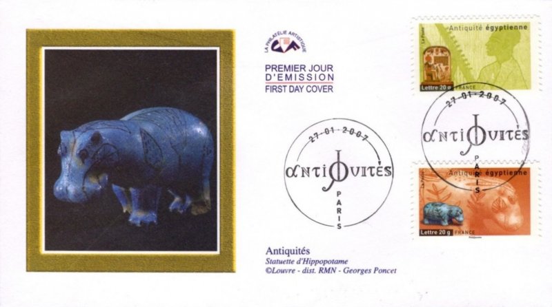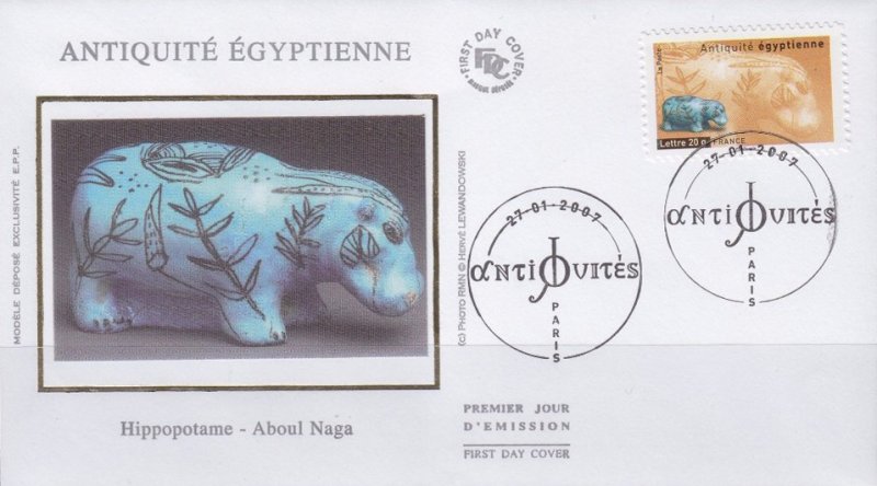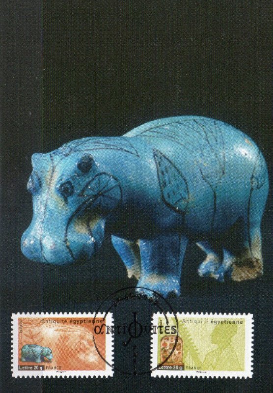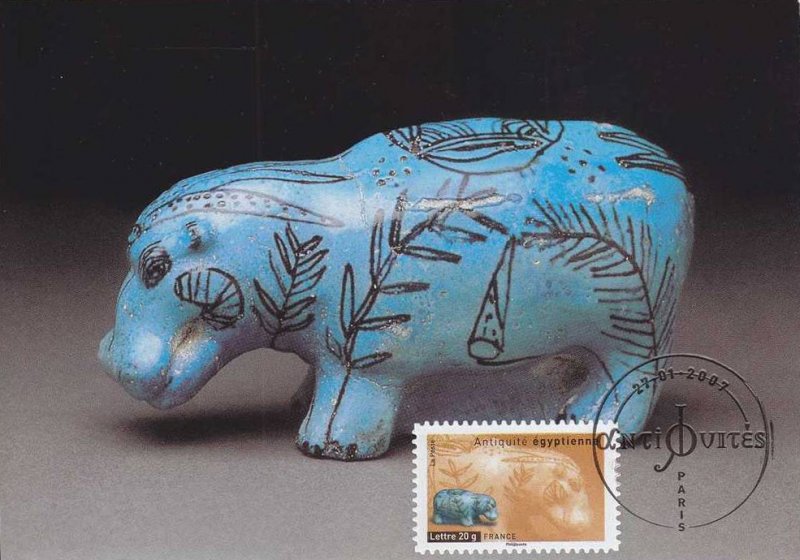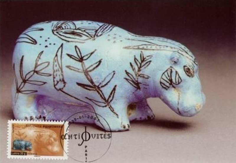 | Description | Antiquités : Hippopotame en faïence datant de la fin de la 2e période intermédiaire égyptienne |