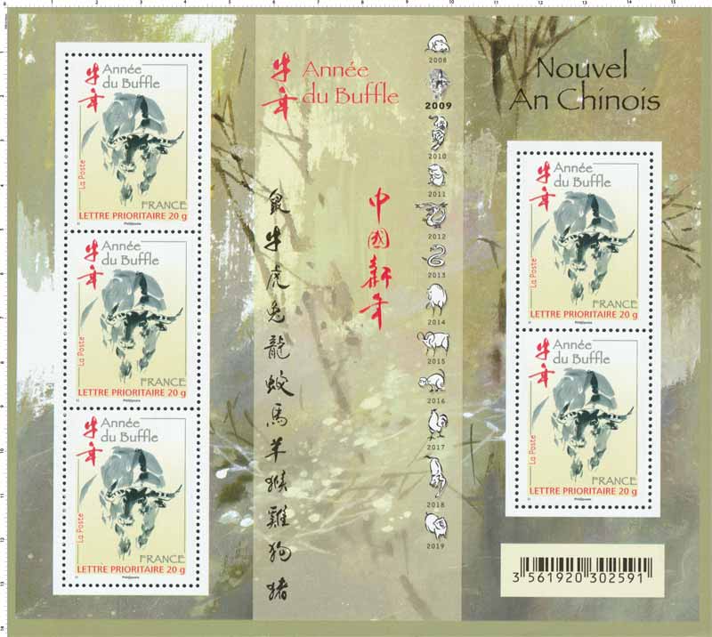 | Description | Nouvel An chinois : Année du Buffle (l'année débute le 26 janvier 2009), issus de la mini feuille de 5 TP |