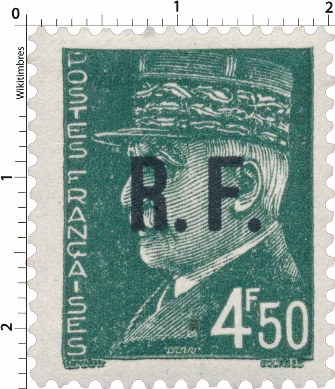 | Description | Maréchal Pétain (1856-1951), né à Cauchy-à-la-Tour, surcharge R.F. (Poitiers type IV) |