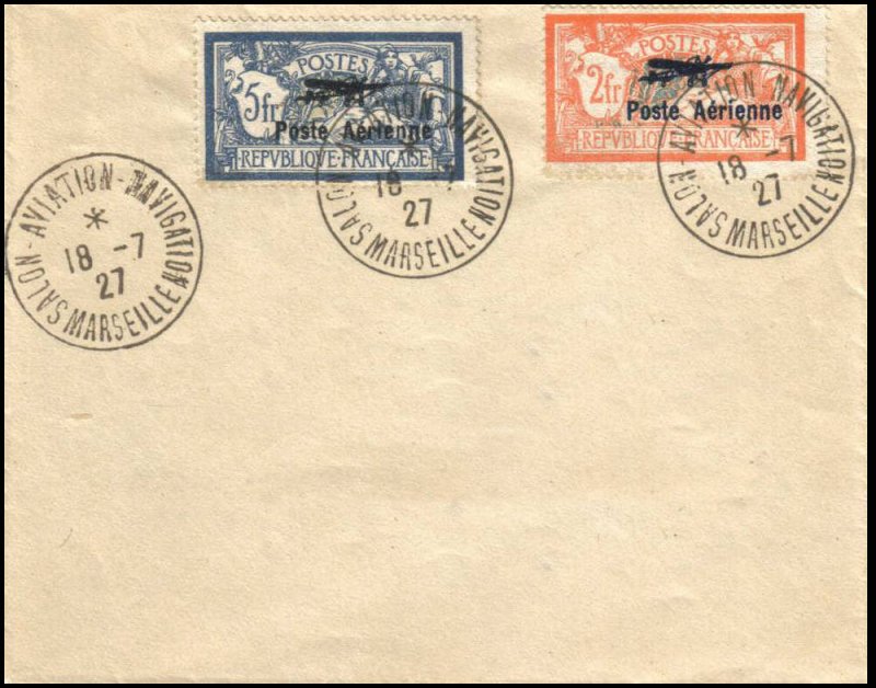| Commentaire | Premier salon international de l'aviation, à Marseille. Type Merson. 1ere apparition de la mention Poste Aérienne sur un timbre français |