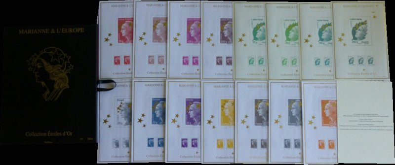 | Description | Coffret Marianne Etoiles d’Or. Ce coffret contient 15 feuillets, format de la grande Marianne : 15 x 21 mm |