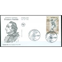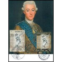 | Commentaire | L’émission commune entre la France et la Suède met à l’honneur l’Opéra Garnier de Paris et l’Opéra de Stockholm. Gustave III, roi de Suède de 1771 à 1792, grand francophile, à qui Louis XVI a cédé l’île de Saint-Barthélemy (rétrocédée à la France en 1878 et rattachée à la Guadeloupe dont elle devient une commune en 1946) fut assassiné en 1792. Un opéra créé par Daniel Auber, Le Bal masqué, retrace et met en scène les dernières heures de Gustave III. Le 1er timbre reprend un portrait de Daniel Auber, le 2e évoque le ballet. Le fond de bloc, quant à lui, représente l’escalier d’honneur de l’Opéra Garnier.