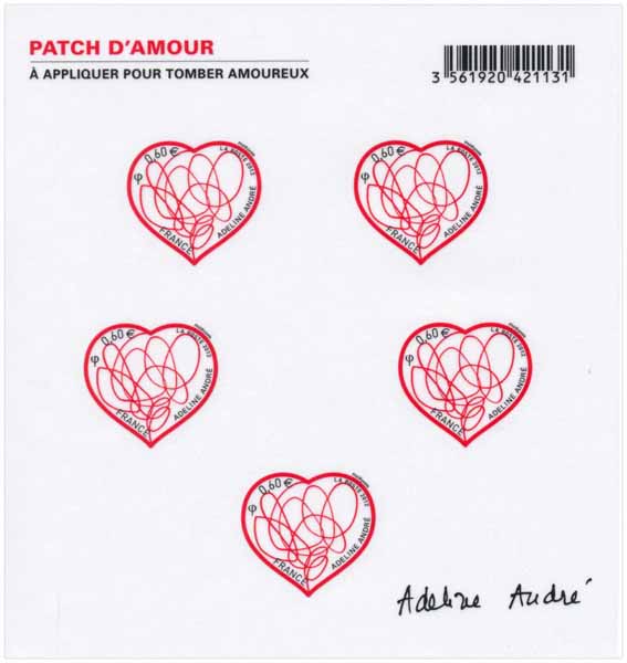 | Commentaire | Le cœur 2012 au tarif Lettre 20 g, n'existe qu'en autoadhésif ( Le Support polypro ne permet pas le gommage ). Également disponible en feuille de 30 timbres autocollants Adeline André a créé un timbre pour illustrer le coeur griffé 2012. “L’idée d’un timbre transparent s’est immédiatement imposée à moi car il prendra pour fond la couleur de l’enveloppe, du colis sur lequel il sera collé. Le coeur, symbole de l’amour, le timbre coeur utilisé pour envoyer des lettres d’amour, des faire-part de mariage. J’ai dessiné le coeur amoureux, le coeur bouillonnant, en fusion, un patch d’amour à appliquer.”