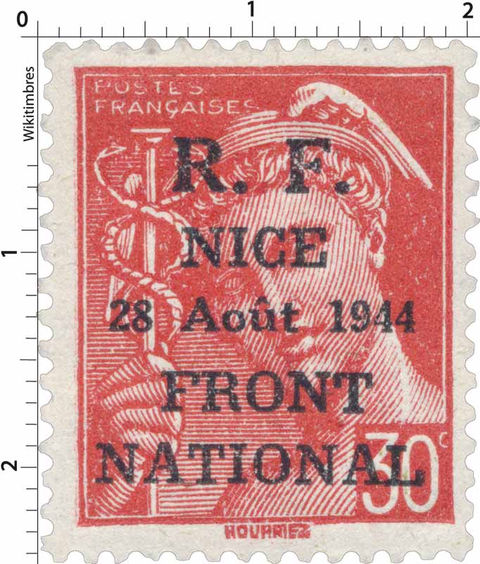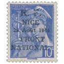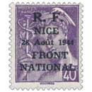 | Description | Type Mercure, surcharge R.F. surchargé R.F. NICE 28 août 1944 FRONT NATIONAL |