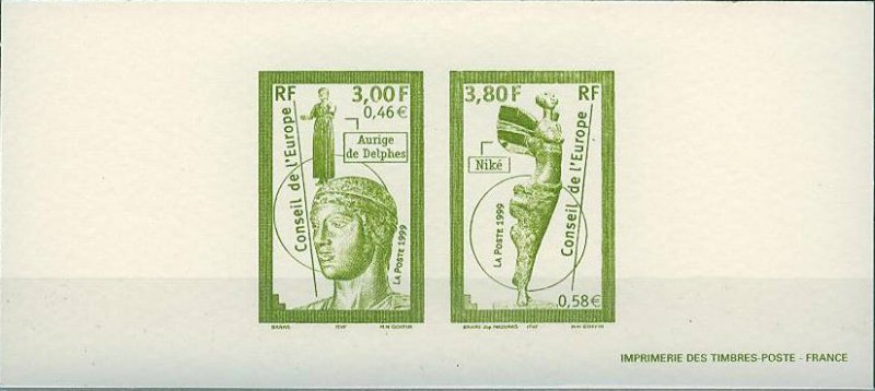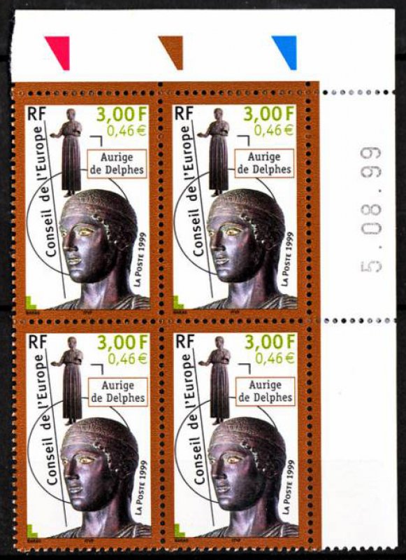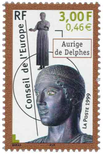 | Commentaire | Description synthétique du visuel du timbre : Plusieurs pays membres du Conseil de l’Europe ont souhaité matérialiser, par des œuvres d’art, leur attachement à ce que le Conseil de l’Europe signifie et symbolise. Le Conseil de l’Europe s’est ainsi vu doté d’une riche collections d’œuvres d’art dont la sculpture constitue l’ensemble le plus représenté. La Grèce a fait don d’une réplique en bronze de la statue de l’Aurige dit de Delphes dont l’original, datant de 475 avant J.C., est exposé à Delphes. Le choix d’une mise en page très contemporaine s’allie à la modernité de l’œuvre. De même le cadrage dynamique met particulièrement en valeur la finesse des détails. |