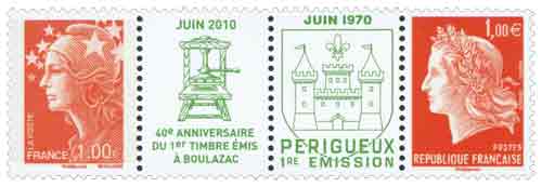 | Description | Paire, Marianne de Beaujard et de de Cheffer, 40e anniversaire du premier timbre émis à Boulazac (Dordogne) |