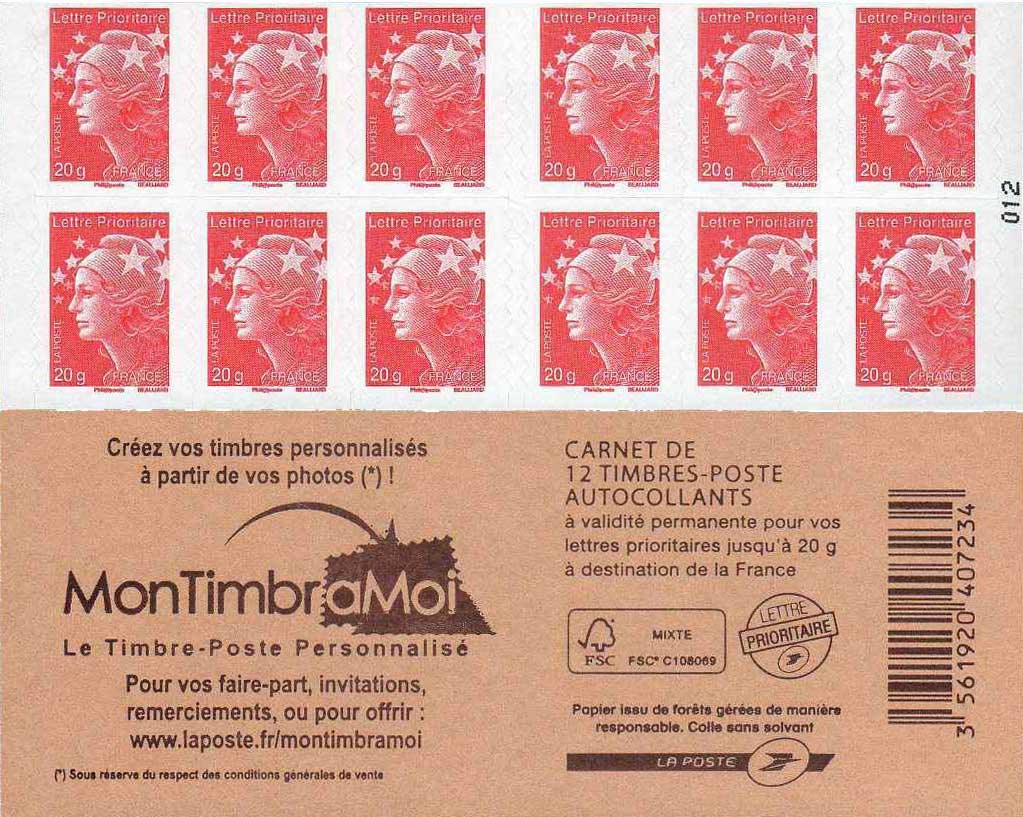| Description | Carnet Marianne - Couv. “MonTimbraMoi” |