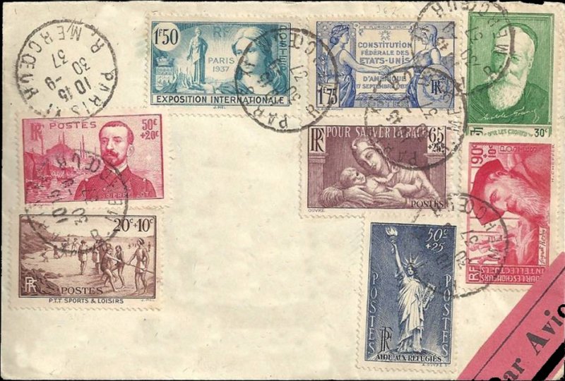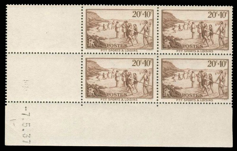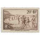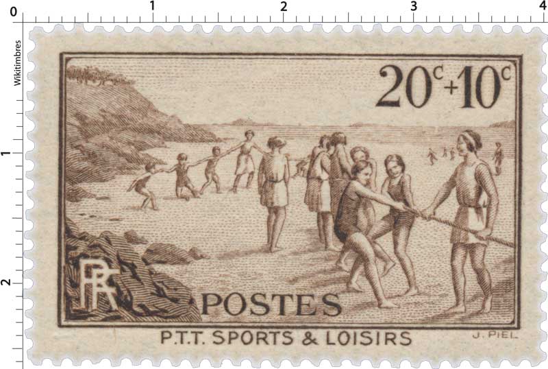 | Commentaire | PTT Sports et Loisirs - Jeux de plage. Fédération des Sociétés Postales de Mutualité : aider les oeuvres sociales dont l'action tend à l'amélioration générale de l'état sanitaire du personnel. La surtaxe de 10 centimes était destinée : 50% pour financer l'ASPTT (construction du stade de Pantin) - 35% pour subventionner les auberges de loisirs des PTT - pour 15% les colonies de vacances des enfants des personnels des PTT. Le timbre français Yvert et Tellier n°345, émis en 1937, est le premier d'une courte série de bienfaisance conçue pour soutenir les œuvres sociales et sportives des P.T.T.. Dessiné et gravé en taille-douce par Jules Piel, cette vignette illustre les Plaisirs de la Plage, un thème léger contrastant avec la gravité de la crise économique et sociale des années 1930. Faisant partie d'une émission de seulement 1,5 million d'exemplaires pour la série, ce timbre était un surtaxé dont le montant additionnel finançait directement l'amélioration sanitaire du personnel, les auberges de jeunesse, et l'Association sportive des PTT, notamment pour l'acquisition d'installations comme le stade de Pantin. Il représente un jalon important de la philatélie française moderne, où les émissions spéciales sont de plus en plus utilisées pour financer des causes d'intérêt général, une pratique courante pour les timbres PTT Sports de cette décennie. Son utilisation témoigne des tarifs postaux en vigueur en 1937, tout en documentant les prémices du mouvement des loisirs et des congés payés. |