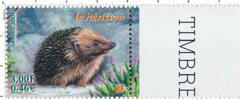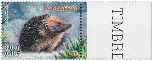 | Description | Le hérisson (timbre provenant d'une feuille de 40 TP) |