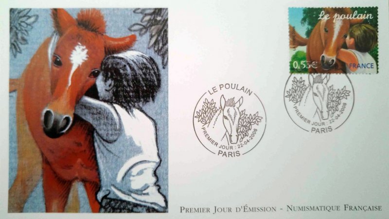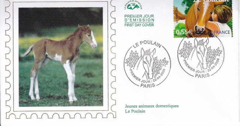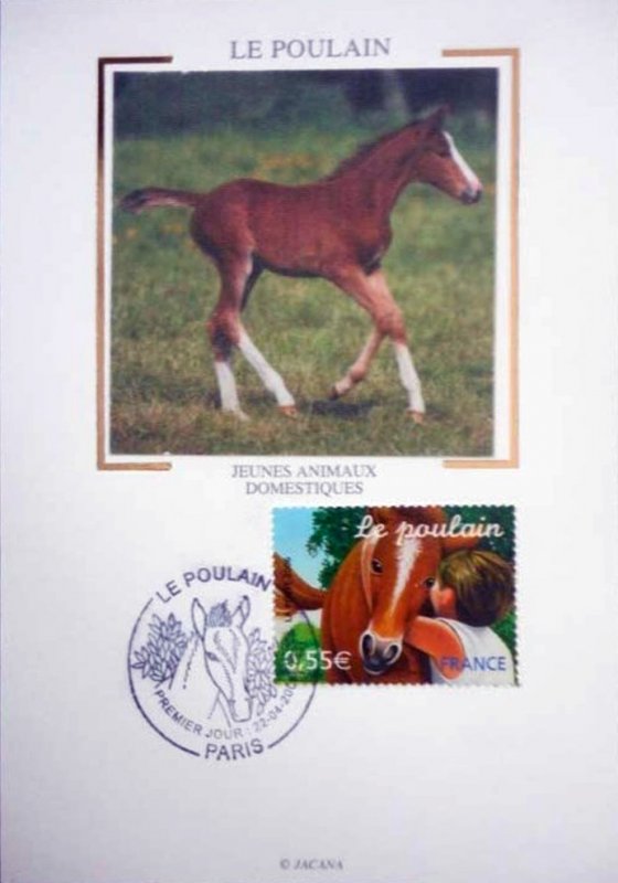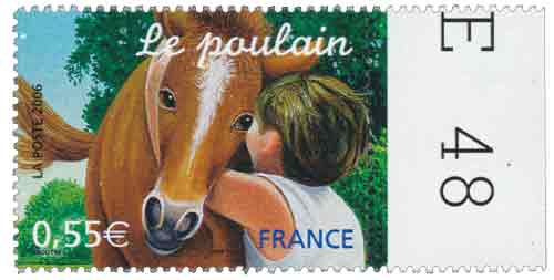 | Description | Jeunes animaux domestiques : Le poulain (timbre provenant d'une feuille de 48 TP) |