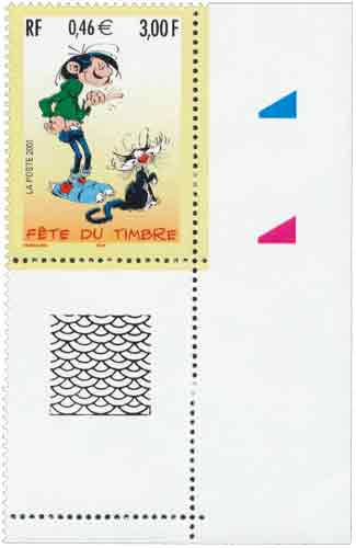 | Description | Fête du Timbre 2001. Sans surtaxe. Gaston Lagaffe, d'André Franquin (1924-1997), auteur de bande dessiné d'origine belge, mort à Saint-Laurent-du-Var (provient d'une feuille de 40TP) |