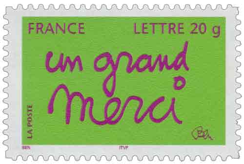 | Description | Timbres de messages. Un grand merci. Sans valeur indiquée (validité permanente) |