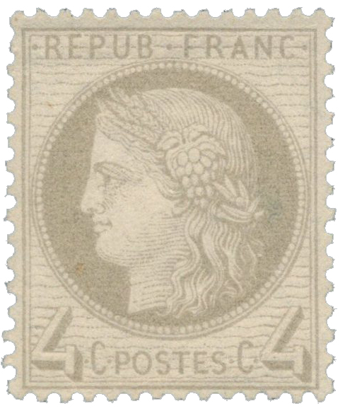 | Commentaire | Cérès IIIème République. Retrait 1876 Émis en juin 1872, le 4 centimes gris, n°52, complète la série des premières valeurs dentelées au type Cérès sous la IIIe République. Imprimé de mai 1872 à juin 1876, il répond à un besoin très spécifique : assurer les affranchissements réduits et certains tarifs particuliers introduits après la réforme postale du 1er septembre 1871. Cette valeur intermédiaire occupe une place singulière dans la gamme Cérès, car elle sert souvent de complément pour ajuster précisément l’affranchissement, notamment dans les envois intérieurs légers ou les tarifs spéciaux. Sa production régulière sur quatre années témoigne de son utilité dans les usages quotidiens du courrier. Comme pour les autres émissions de 1872, Anatole Hulot s’appuie sur les galvanos Cérès déjà disponibles, garantissant une continuité de style avec les tirages antérieurs tout en intégrant la dentelure, désormais standardisée dans la production française. Le n°52 se distingue par sa nuance gris neutre, facilement identifiable, qui permet de le distinguer rapidement des autres faibles valeurs de la série. |
