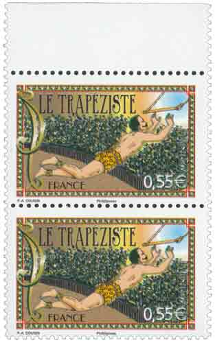 | Description | Le cirque à travers le temps : le trapéziste. La ville de Nexon (Haute-Vienne), devient chaque été, depuis 1987, la capitale, du cirque, provenant d'une feuille de 50 TP |