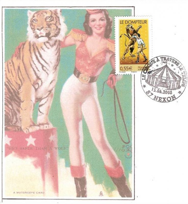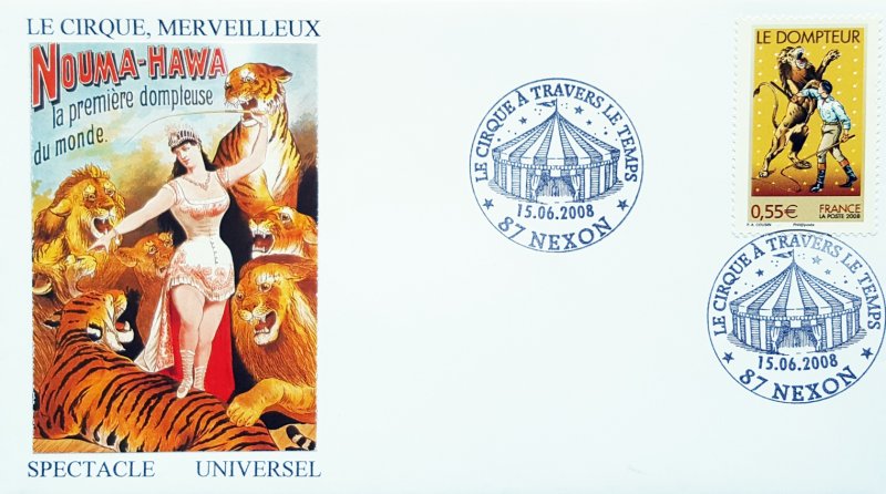 | Description | Le cirque à travers le temps : le dompteur. La ville de Nexon (Haute-Vienne), devient chaque été, depuis 1987, la capitale du cirque, provenant d'une feuille de 50 TP |