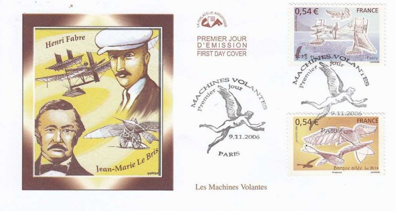 | Commentaire | Une nouvelle collection « le coin des collectionneurs » est émise à partir de 2006, et imprimée en taille douce / offset, un mode d’impression particulièrement apprécié des philatélistes. Honneur à 6 des « machines volantes » de la fin du XVIIIe au début du XXe siècle : le ballon à rames de Jean-Pierre Blanchard (1784), la barque ailée de Jean-Marie Le Bris (1856), l’hélicoptère de Ponton d’Amécourt (1863), l’avion III de Clément Ader (1897), la Demoiselle d’Alberto Santos-Dumont (1908), l’hydravion d’Henri Fabre (1910) et pour agrémenter le fond du bloc les inventions de Léonard de Vinci. |
