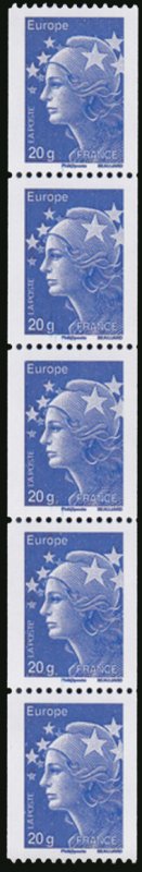 | Commentaire | Existe également en autoadhésif. Leur visuel évolue donc légèrement. Chaque timbre reçoit une mention “Ecopli”, “Lettre prioritaire”, “Monde” ou “Europe” en haut à gauche. Le poids autorisé s’inscrit en bas à gauche. La mention “France” bascule de gauche à droite. Les tarifs Ecopli 50 g et Europe 50 g disparaissent. La Marianne Ecopli 20 grammes abandonne sa couleur verte au profit d’un gris moyen. De plus, elle perd le fond de couleur du timbre pour faciliter sa reconnaissance par les machines de tri. Les Marianne de la monnaie (0,01 €, 0,05 €, 0,10 € et 1,00 €) sont inchangées et toujours disponibles. À partir du 1er juillet, ces nouvelles Marianne sont émises en planches, roulettes, carnets et planches autocollantes |