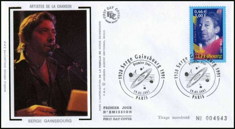 | Description | Serge Gainsbourg (1928-1991), né à Paris, provenant d'une feuille de 50 TP |