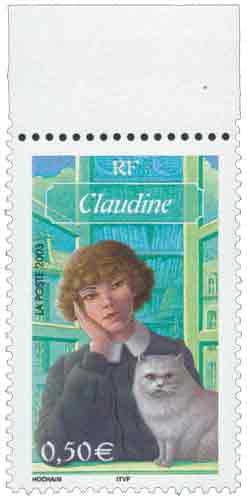 | Description | Claudine, personnage créé par Colette (1873-1954), romancière, née à Saint-Sauveur-en-Puisaye (Yonne), provenant d'une feuille de 50 TP |