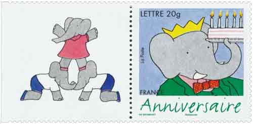 | Commentaire | En 2006, Babar fête ses 75 ans. Figure emblématique de la bande dessinée, créé par Jean de Brunhoff, puis repris par Laurent de Brunhoff, Babar incarne les valeurs fondamentales que sont la famille, la sagesse, le respect, l’écologie. Ce héros positif et aventureux est trans-générationnel et fait partie de la mémoire collective. Timbre sans millésime |