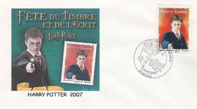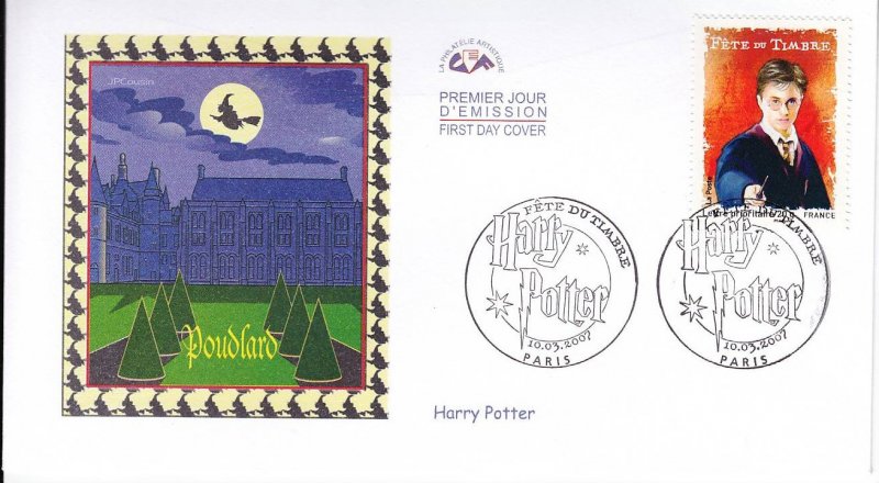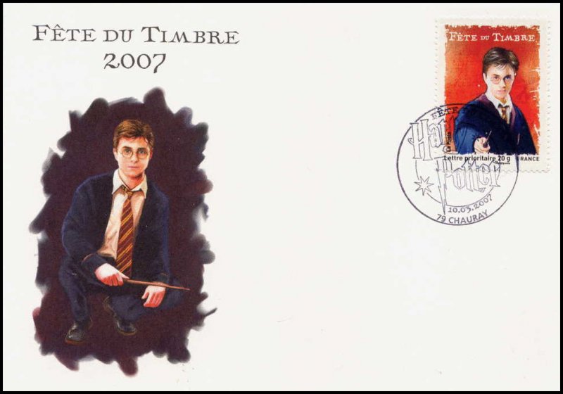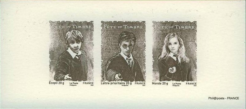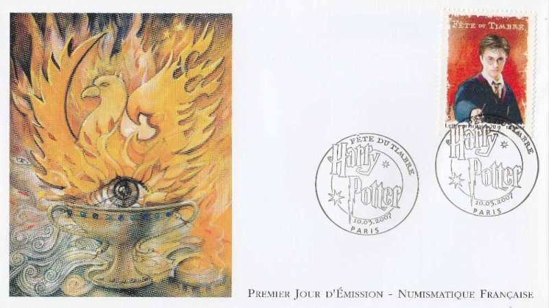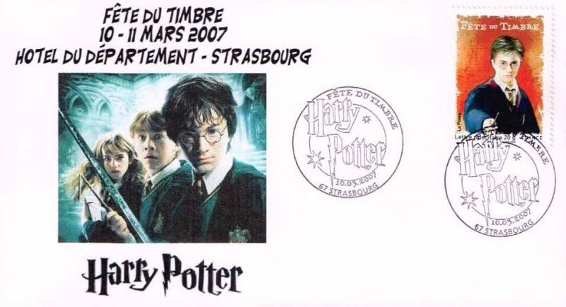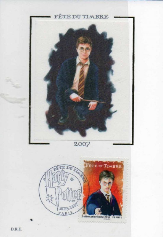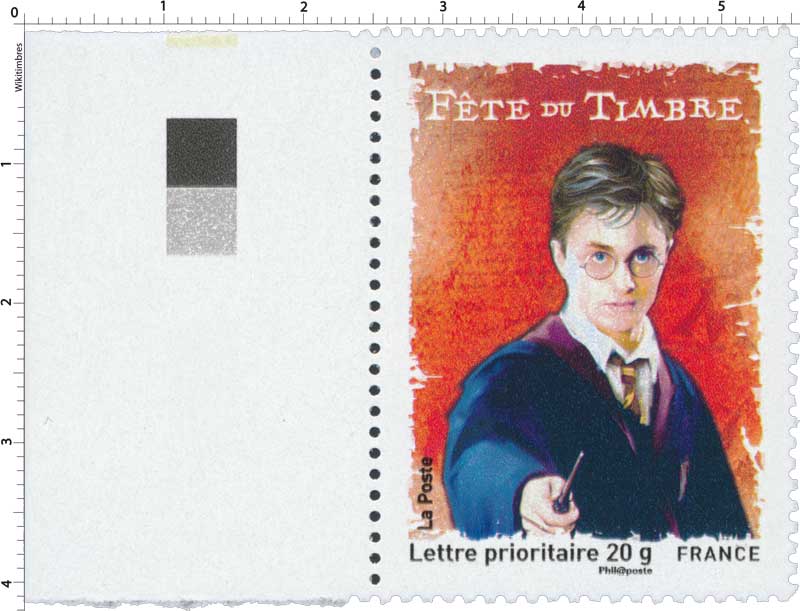 | Commentaire | Harry Potter est le héros de la série littéraire écrite par l'écrivain Joanne Kathleen Rowling. Elle raconte à travers sept tomes l'histoire de cet apprenti sorcier, chaque tome correspond à une année scolaire. Les timbres émis à l’occasion de la fête du timbre 2007 feront référence à l’univers du tome 5 Harry Potter et l’Ordre du Phénix. Timbre sans millésime |