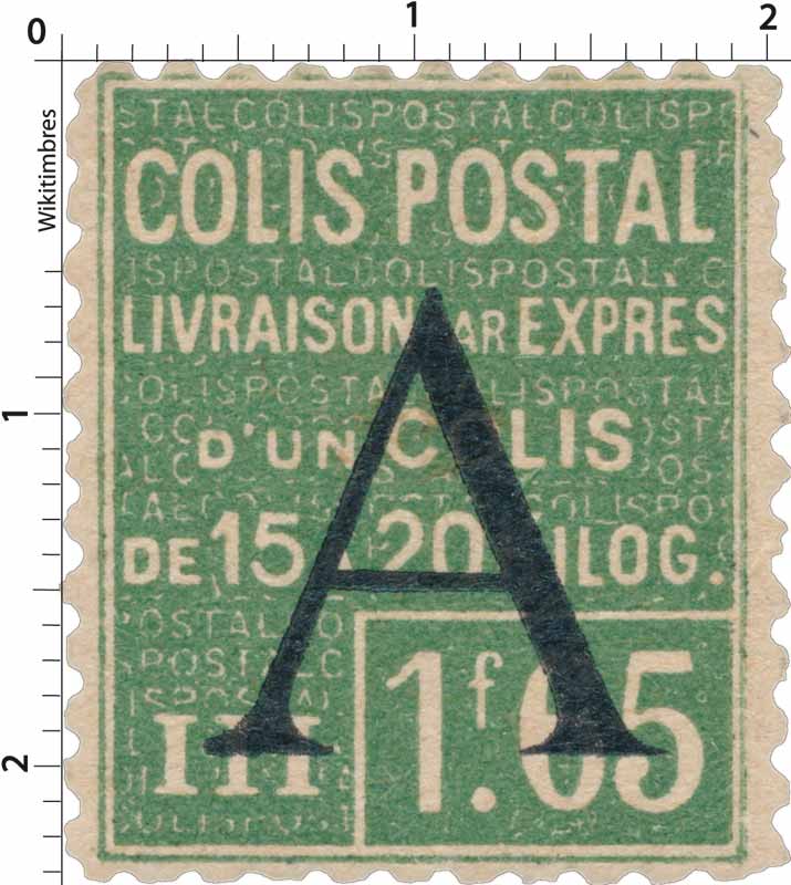 | Description | Colis postaux, surchargé A sur 1F.65 |