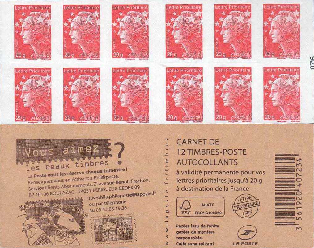 | Description | Carnet Marianne - Couv. “Abonnement beaux timbres” |