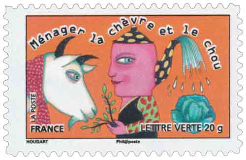 | Commentaire | " Ménager la chèvre et le chou " : satisfaire deux personnes aux intérêts opposés. Cette expression date du XIIIe siècle, elle signifie ménager des intérêts contraires. Si une chèvre se trouve devant un chou, elle risque de le manger. Si l'on souhaite que les deux restent intacts, il va donc falloir les ménager, c'est-à-dire en prendre soin. |