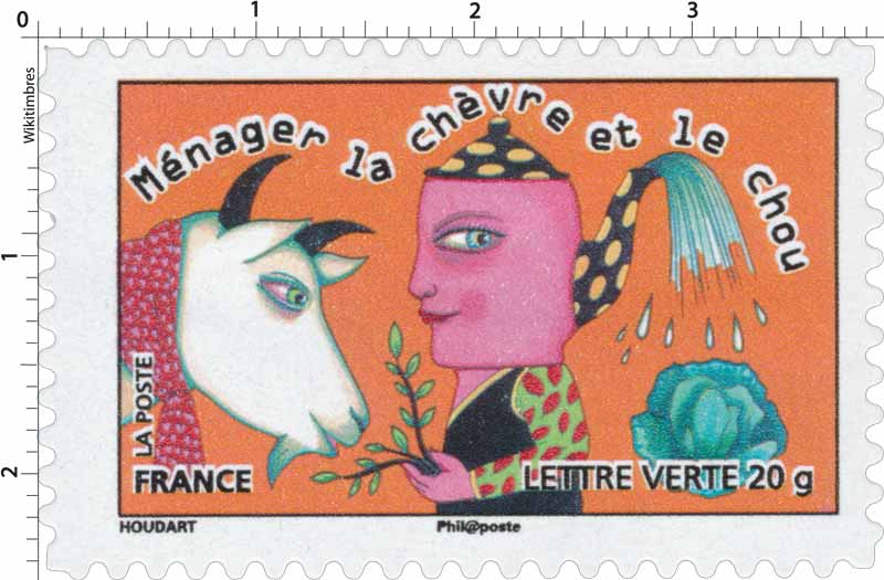 | Commentaire | " Ménager la chèvre et le chou " : satisfaire deux personnes aux intérêts opposés. Cette expression date du XIIIe siècle, elle signifie ménager des intérêts contraires. Si une chèvre se trouve devant un chou, elle risque de le manger. Si l'on souhaite que les deux restent intacts, il va donc falloir les ménager, c'est-à-dire en prendre soin. |