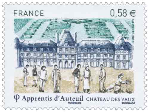 | Commentaire | Feuille de 8 bandes de 6 TP En savoir plus sur Wikipédia : Apprentis d'Auteuil Fondée en 1866, la Fondation d’Auteuil était à l’origine tournée vers l’éducation des orphelins. “Créer, agir et innover pour le service des enfants les plus démunis” était le mot d’ordre des deux fondateurs. Fondation catholique, elle se consacre aujourd’hui à l’insertion et la formation des jeunes en difficulté sociale. Elle a été reconnue d’utilité publique dès 1929 et accueille près de 9 500 jeunes. Le château des Vaux, situé à 40 km de Chartres, est l’un de ses établissements phares. Au coeur d’un parc boisé de 110 ha, il est composé de bâtiments datant du XVIIe siècle, agrandis et décorés dans les années 1880. Les anciens jardins à la française ont été transformés en potager-école où travaillent les élèves du lycée horticole.
