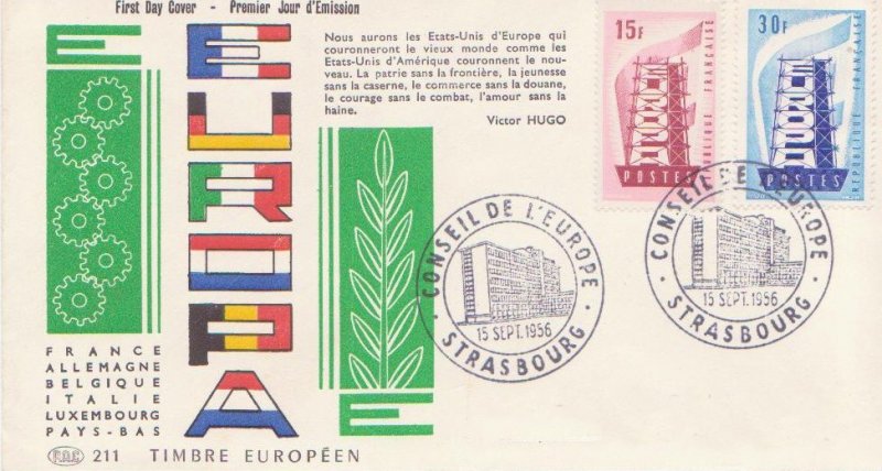 | Description | Europa. Oblitération 1er jour à Paris et Strasbourg. Édification de l'Europe nouvelle |