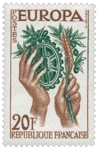 | Commentaire | Émis en septembre 1957 dans le cadre des premières émissions EUROPA, ce timbre français s’inscrit pleinement dans le moment fondateur de la construction européenne d’après-guerre, alors que six États — rejoints cette année-là par d’autres administrations postales — choisissent de faire du timbre un vecteur politique discret mais lisible ; le thème retenu, « l’Europe unie, facteur de paix et source de prospérité », fait directement écho à l’actualité institutionnelle de 1957, marquée par la signature des traités de Rome instituant le Marché commun et l’Euratom, et traduit la volonté de dépasser les antagonismes nationaux à travers l’économie, l’énergie et la coopération industrielle ; dans un contexte de guerre froide où l’Europe cherche sa voie entre les blocs, ce timbre exprime une foi mesurée mais affirmée dans l’intégration continentale comme rempart contre les conflits passés et comme cadre de modernisation, tout en reflétant une vision encore très technicienne du progrès, associant agriculture et industrie comme piliers de la paix durable ; la simultanéité de l’émission dans plusieurs pays, décision concertée au niveau international, constitue en elle-même une innovation politique et philatélique, faisant du timbre non plus seulement un signe de souveraineté nationale, mais un symbole partagé, annonciateur d’une identité européenne en construction. |