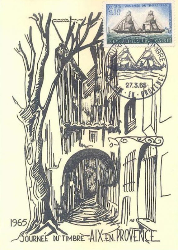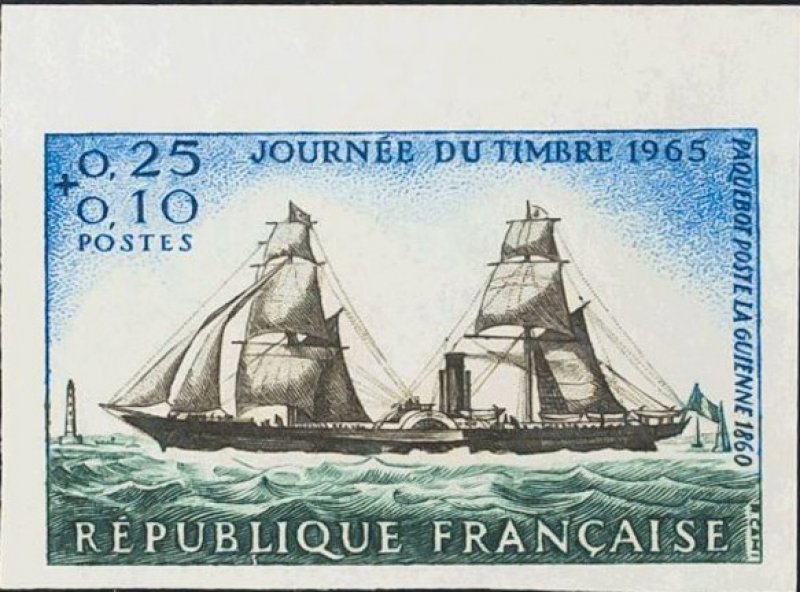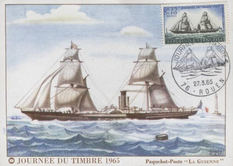 | Description | Journée du timbre 1965. Paquebot-poste La Guienne, lancé le 15 octobre 1859 à La Ciotat (Bouches-du-Rhône) |