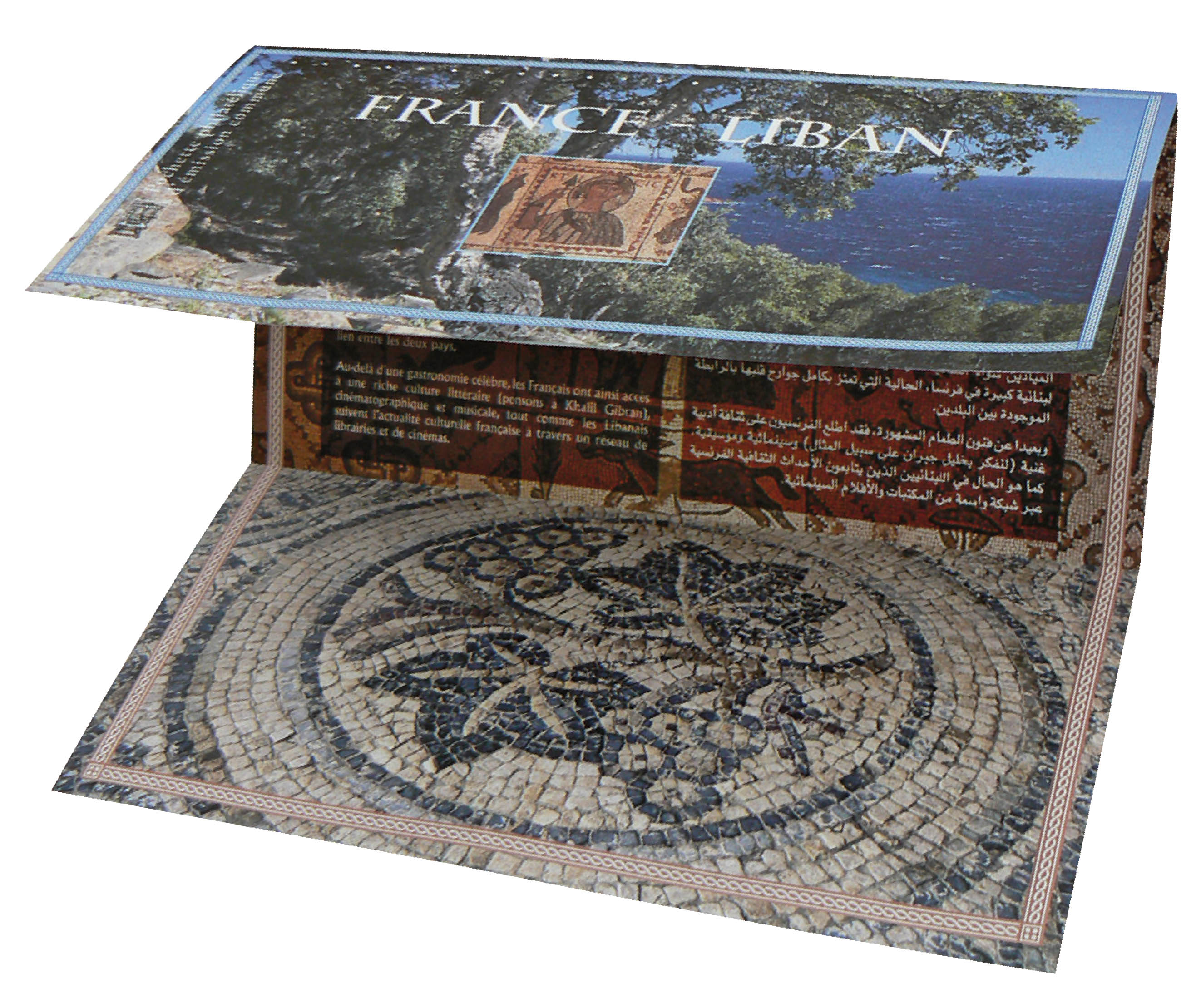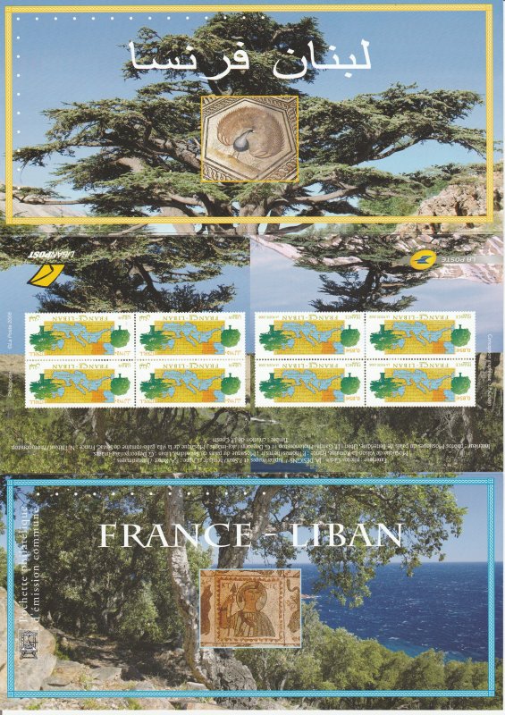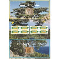| Description | France-Liban. Dans le cadre d'une émission conjointe avec le Liban, représentation du bassin méditerranéen, d'un chêne et d'un cèdre du Liban |