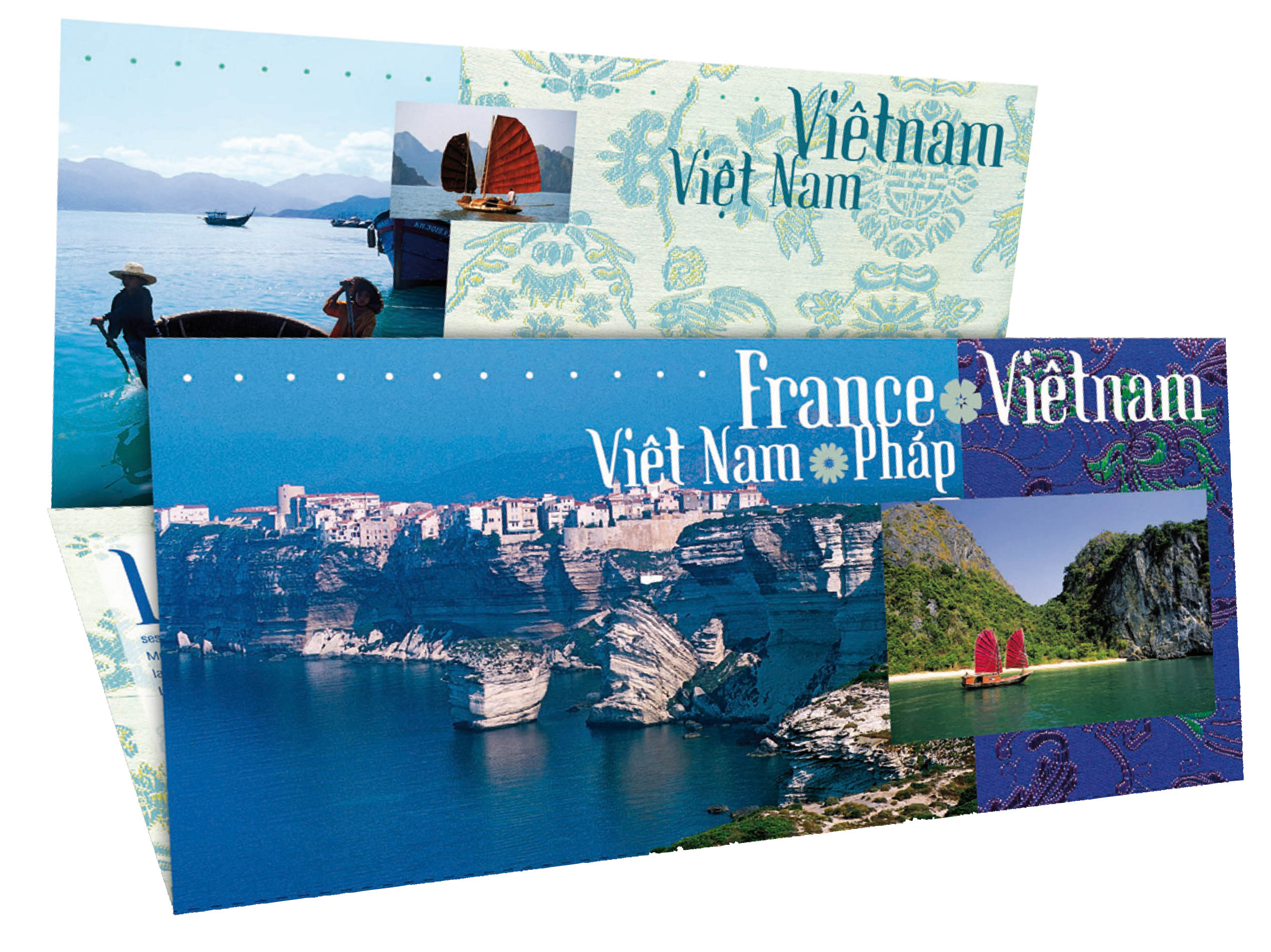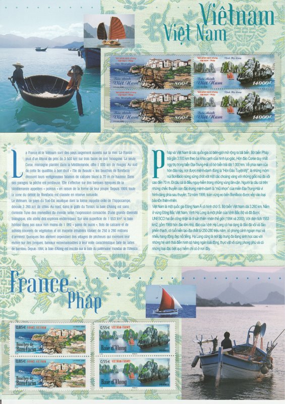 | Commentaire | La manifestation premier jour a lieu le 15 novembre à Bonifacio et au siège de l'Union générale des Vietnamiens de France, à Paris. Claude Perchat dessine une voile latine et un sampan, deux types de bateaux des deux régions dépeintes sur les timbres |