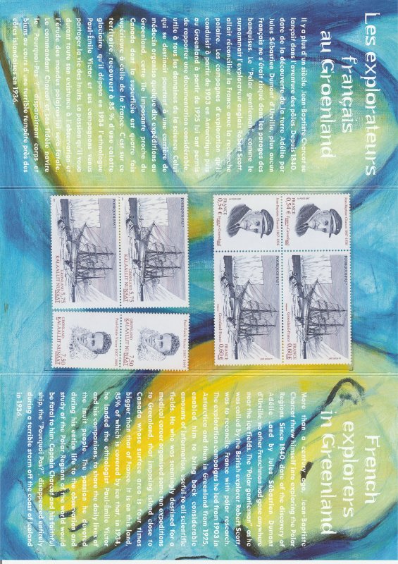 | Commentaire | Jean-Baptiste Charcot 1867 – 1936 POURQUOI-PAS ? Les timbres de l’émission commune avec le Groenland illustrent le thème des expéditions internationales parties du Groenland. Deux timbres en diptyque sont émis par la France, un portrait de Jean-Baptiste Charcot sur celui de gauche, son bateau le Pourquoi-Pas ? à droite. Médecin, Charcot fut aussi marin et le premier explorateur à pénétrer sur la côte orientale du Groenland. En 1934, il installera au Groenland la mission de Paul-Émile Victor dont le portrait illustre le timbre que le Groenland émet avec le timbre Pourquoi-Pas ?. Charcot disparut en 1936 lors du naufrage de son bateau près des côtes islandaises |