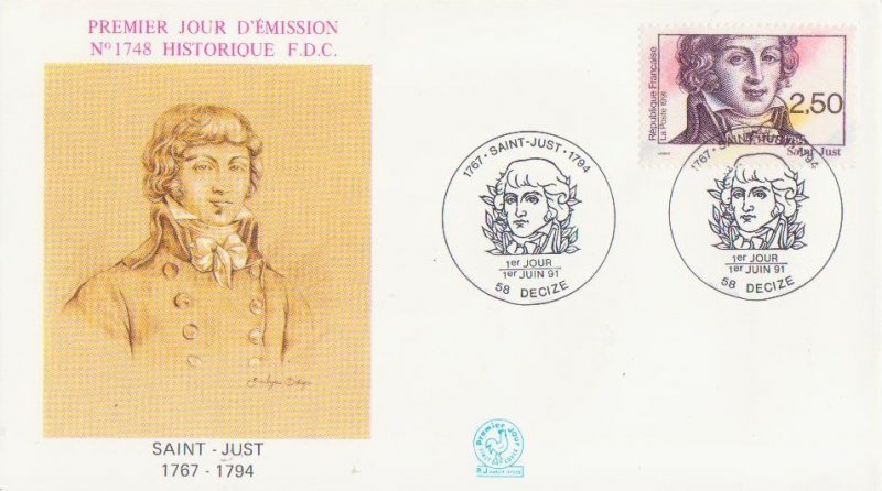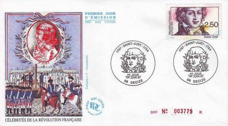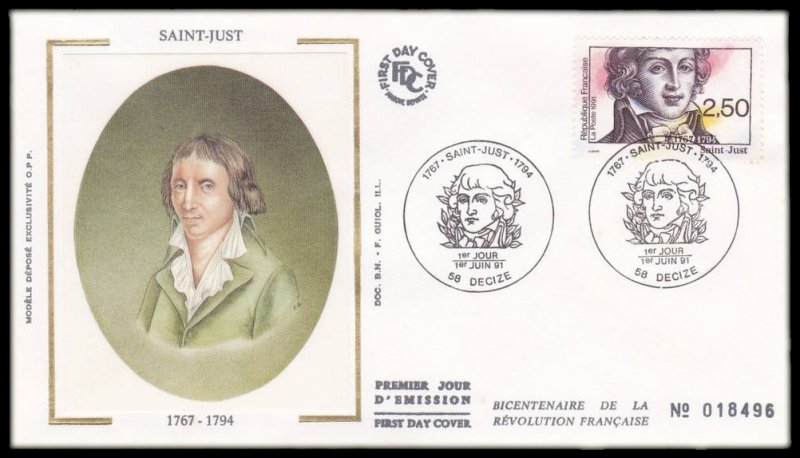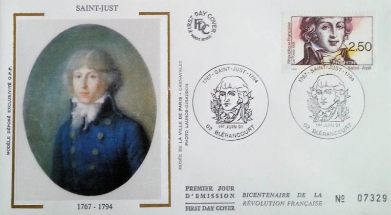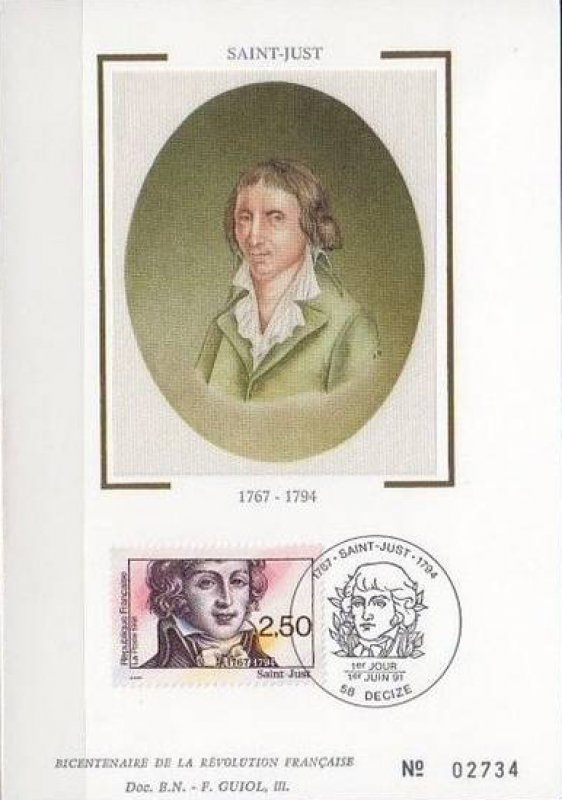 | Description | Bicentenaire de la Révolution française, Saint-Just (1767-1794), homme politique et révolutionnaire, né à Decize (Nièvre) |