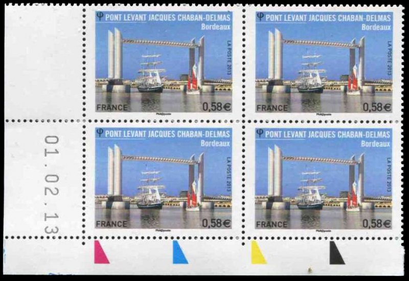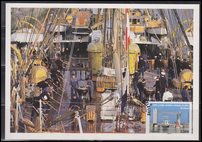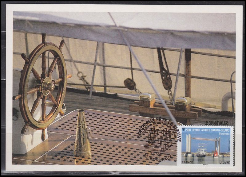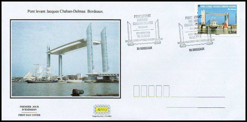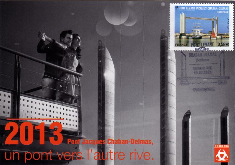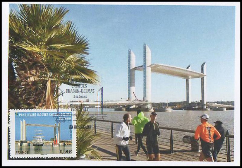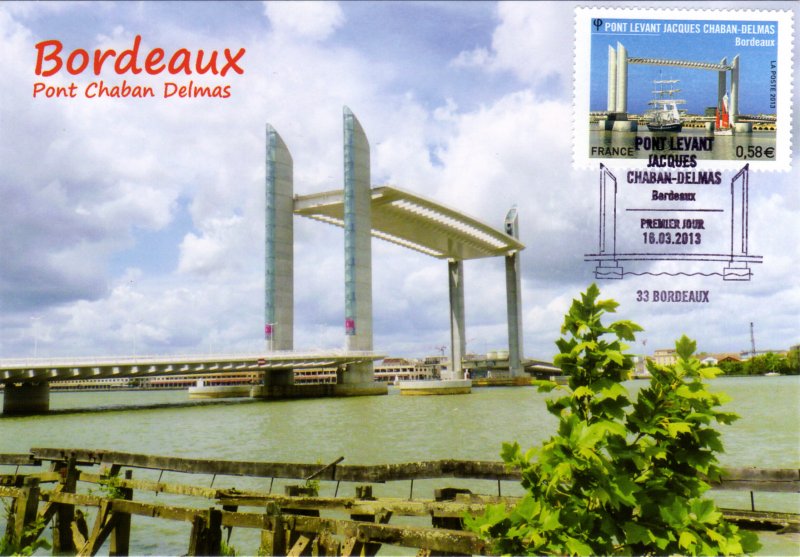 | Commentaire | Feuille de 7 bandes de 6 TP En savoir plus sur Wikipédia : Pont Jacques-Chaban-Delmas En mars 2013, la Communauté urbaine de Bordeaux a inauguré un nouveau pont baptisé “Pont levant Jacques Chaban-Delmas”, qui permet de relier 2 quartiers : le Bacalan sur la rive gauche et La Bastide sur la rive droite. Conçu par l'architecte Thomas Lavigne, ce pont constitue une prouesse technique : il est l'un des plus grands ponts levants d'Europe, avec 433 m de long pour une hauteur de 77 m. Son système de poulies permet le levage de la travée centrale en seulement onze minutes.