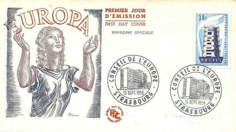 | Description | Europa. Oblitération 1er jour à Paris et Strasbourg. Édification de l'Europe nouvelle |