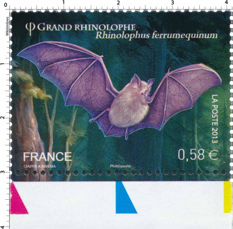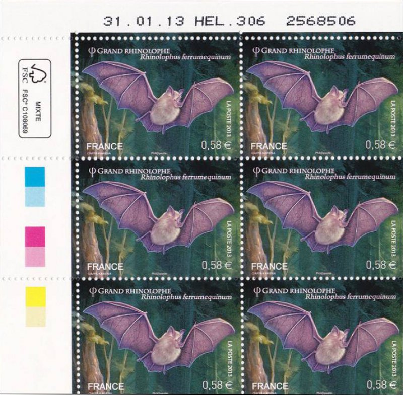 | Commentaire | Provenant d'une feuille de 42 TP - Feuille de 7 bandes de 6 TP En savoir plus sur Wikipédia : Rhinolophe |