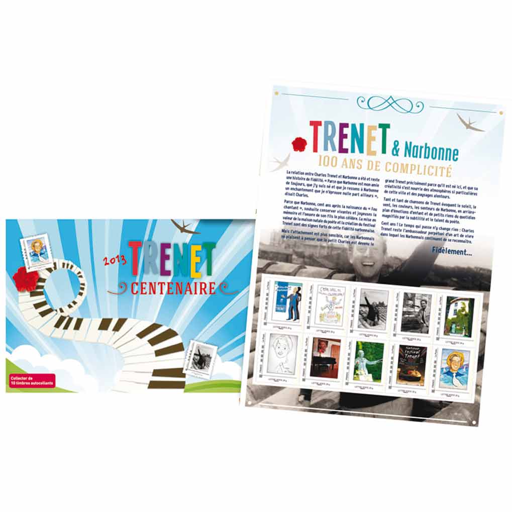 | Commentaire | Charles Trenet est né à Narbonne en 1913 et nombre de ses chansons, à commencer par la Jolie Sardane, sont marquées par ces racines du Languedoc et du “pays catalan” ; sa créativité s’est nourrie de l’atmosphère particulière de cette ville et ses paysages alentour. C’est à ces cent ans de complicité que ce très beau collector rend hommage : dix timbres de photos, affiches et portraits, qui raviront les fans de tous âges du chanteur-poète, immortalisé par des mélodies qui ont fait le tour du monde, comme La Mer, Ya d’la joie, Douce France ou l’Âme des poètes. Décédé en 2001, Charles Trenet est enterré au cimetière de l’ouest de Narbonne |