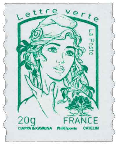 | Description | Marianne - Lettre verte 20 g autoadhésive |