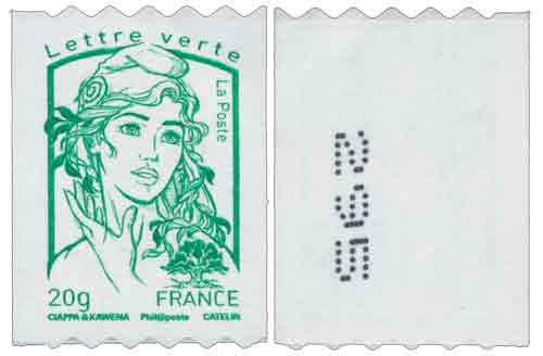 | Description | Roulette Marianne autoadhésive Lettre verte 20 g |