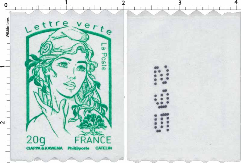 | Description | Roulette Marianne autoadhésive Lettre verte 20 g |