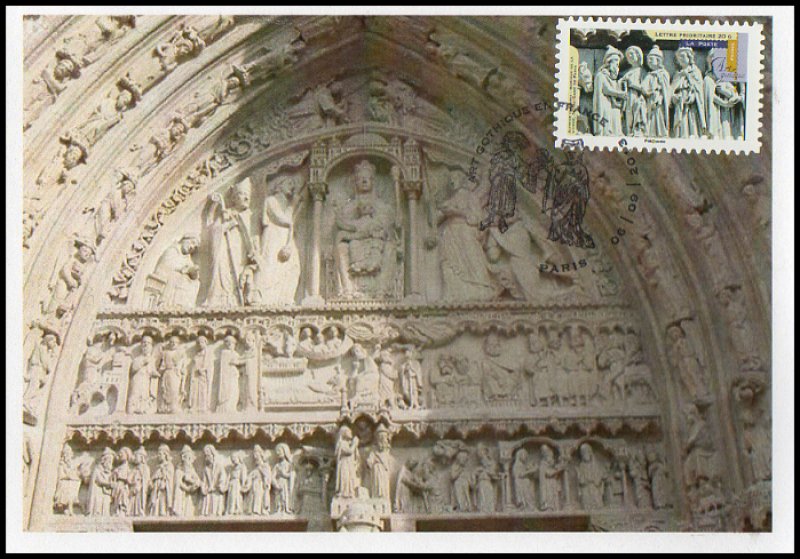 | Commentaire | Visuel : portail dédié à Sainte-Anne, la mère de la Vierge. - une partie de ce portail provient du réemploi d'un tympan de l'ancienne cathédrale Saint-Etienne (une cinquantaine d'année au paravent). Provenant du carnet : L’Art gothique en France Sculpture, orfèvrerie, enluminure L’art gothique est né en France. Le carnet montre en 12 photographies la naissance et l’apogée des cathédrales, devenues de gigantesques, lumineuses et harmonieuses prouesses architecturales. Vitraux, arcs-boutants, voûtes, nefs aux croisées d’ogives, légèreté, dentelures, lumière, élévation… voici les caractéristiques de ces monuments religieux construits entre le XIIe siècle et le XVIe siècle. |