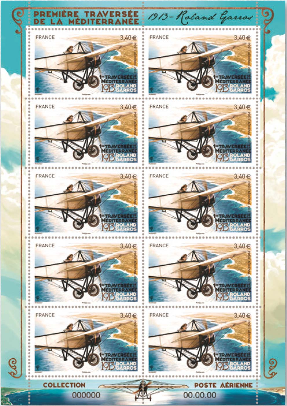 | Description | Feuille Roland Garros - Première traversée de la Méditerranée - 1913 - Roland Garros, aviateur français, né à Saint-Denis de La Réunion |
