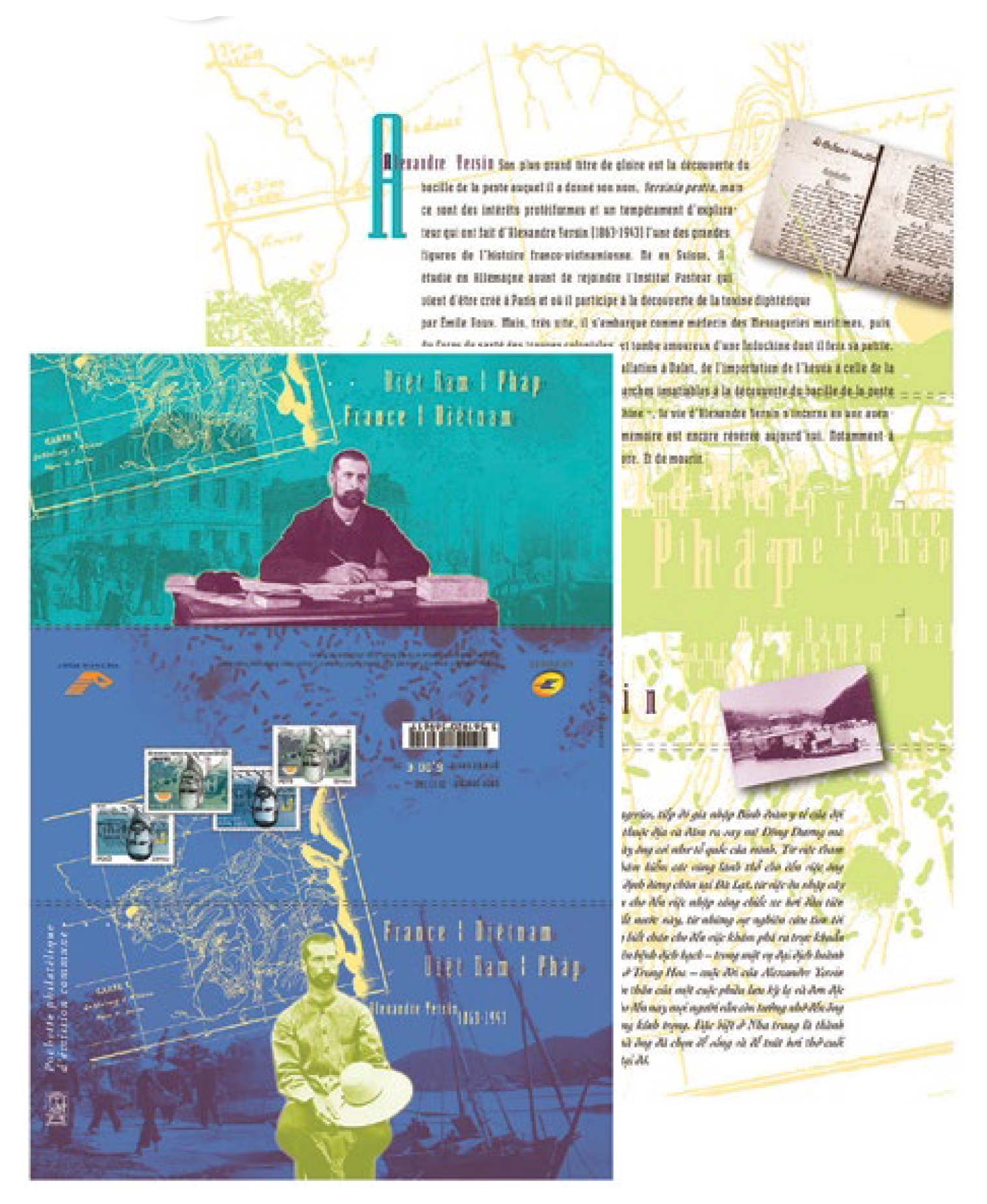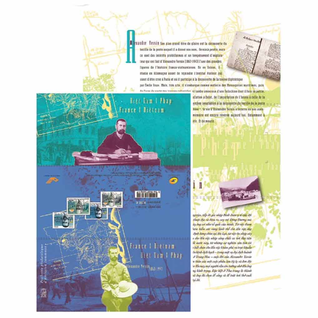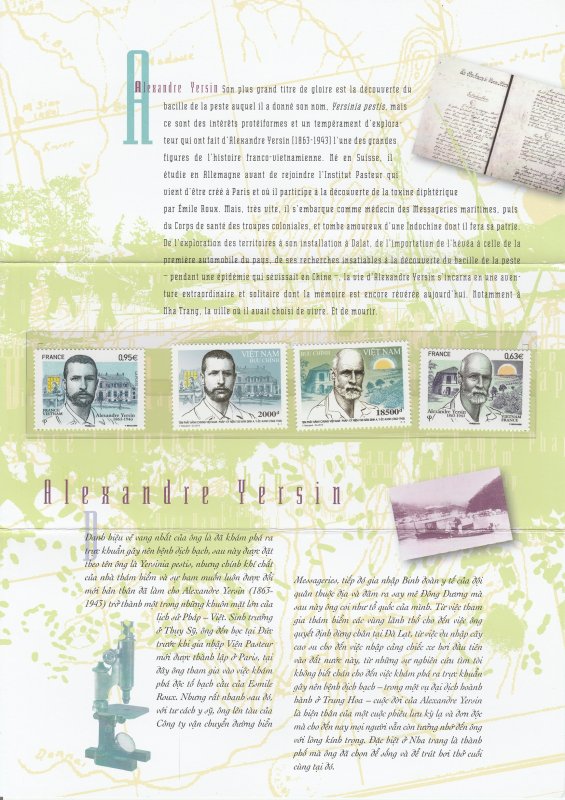 | Commentaire | Format : 210 x 296 mm plié en trois volets / Présentation : 2 timbres français et 2 timbres vietnamiens |
